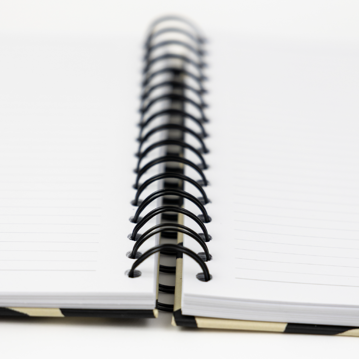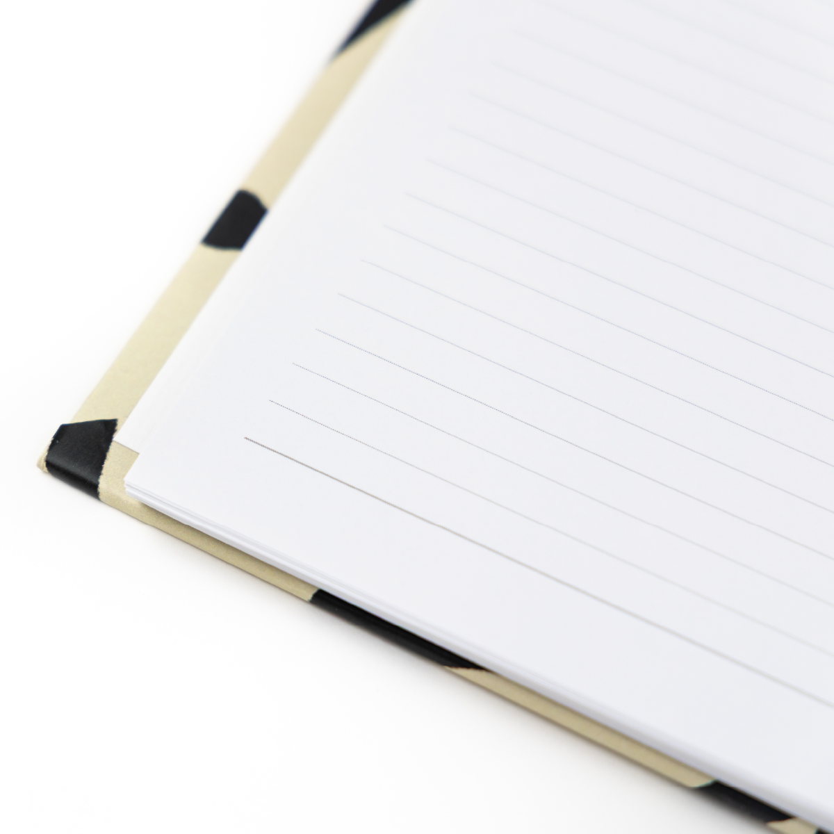 Cuaderno con diseño gráfico floral en alto contraste (negro y beige), personalizado con Foil Dorado.