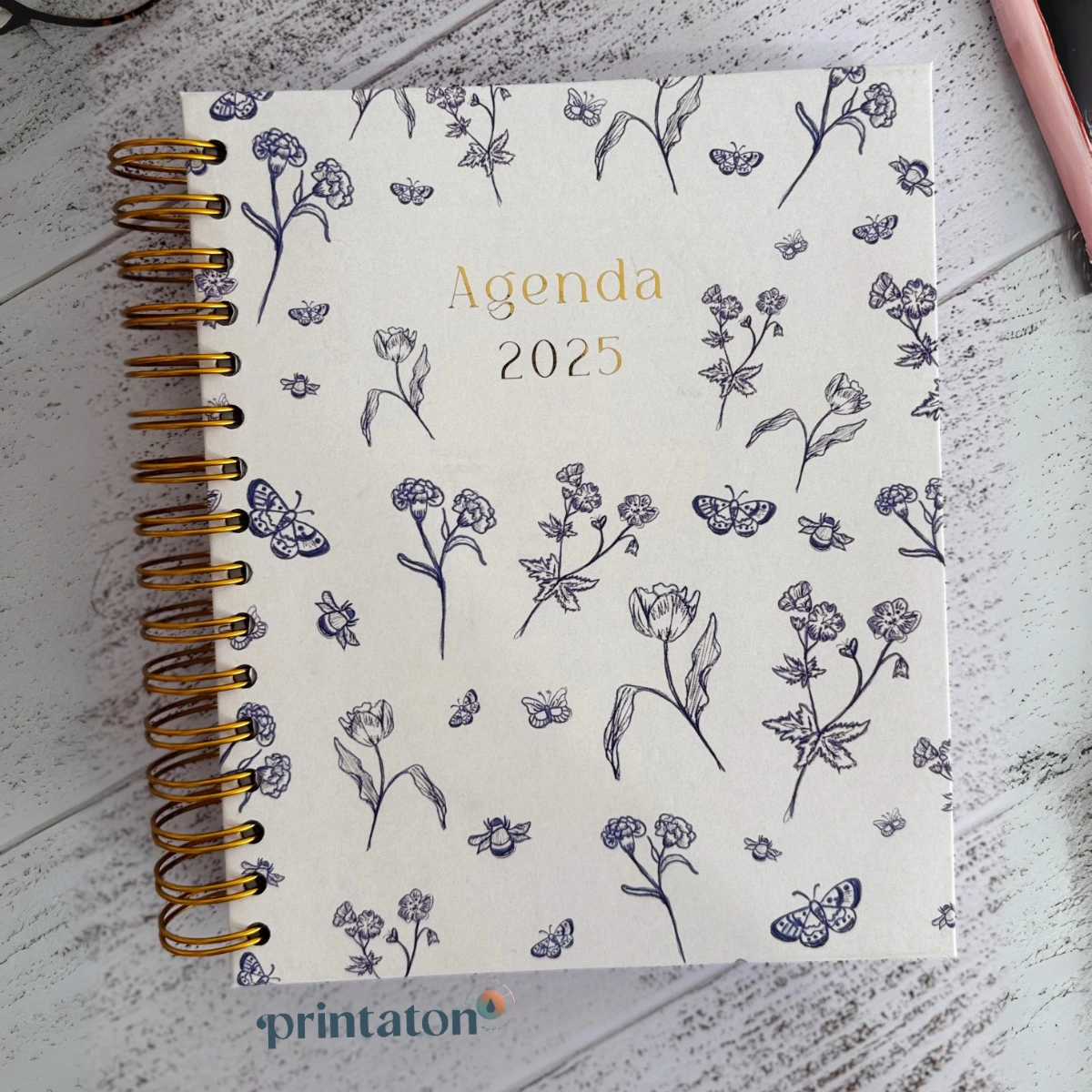 Organiza tu año con la frescura de las flores silvestres y la tranquilidad del azul. Esta agenda personalizada con tu nombre combina elegancia y funcionalidad, ideal para quienes aman los detalles sutiles.