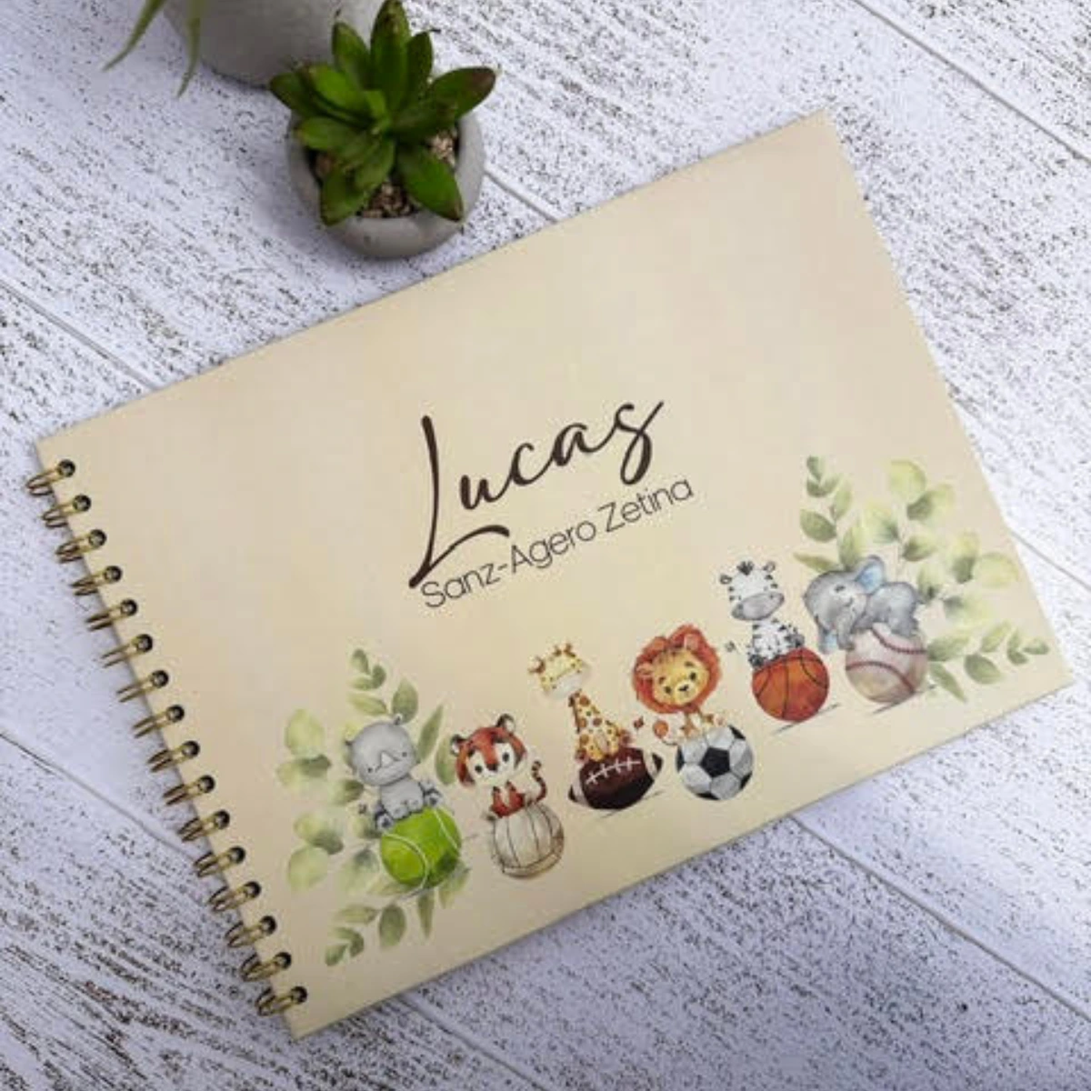 Babybook con diseño de animalitos del bosque, ideal para conservar los recuerdos de tu bebé.