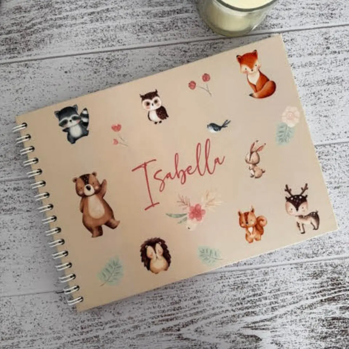 Babybook con diseño de animalitos del bosque, ideal para conservar los recuerdos de tu pequeño.