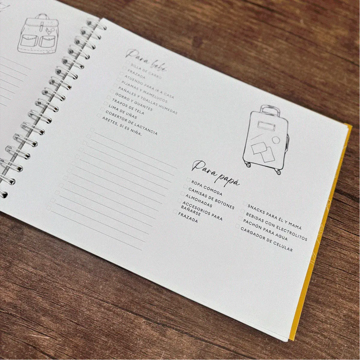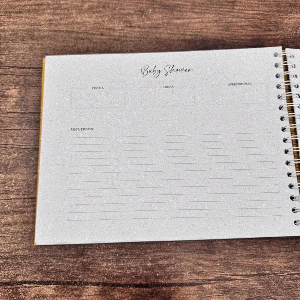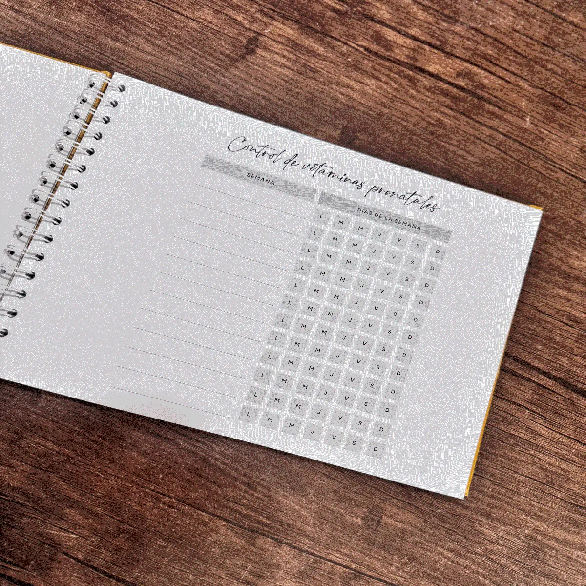 Nuestro Diario de Embarazo es el compañero perfecto para documentar cada detalle de esta etapa tan especial. Con un diseño delicado y moderno, este diario te permite escribir tus pensamientos, pegar tus ecografías, llevar el control de tus citas médicas, y guardar recuerdos desde las primeras semanas hasta el nacimiento de tu bebé.