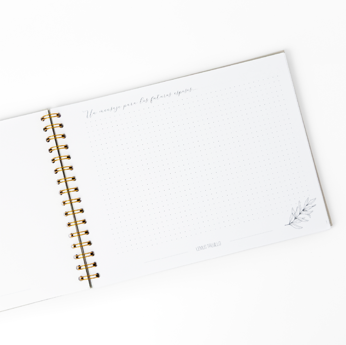 Cada libro cuenta con páginas diseñadas para que los asistentes escriban mensajes, buenos deseos y también puedan incluir fotografías, creando un recuerdo inolvidable y lleno de cariño.