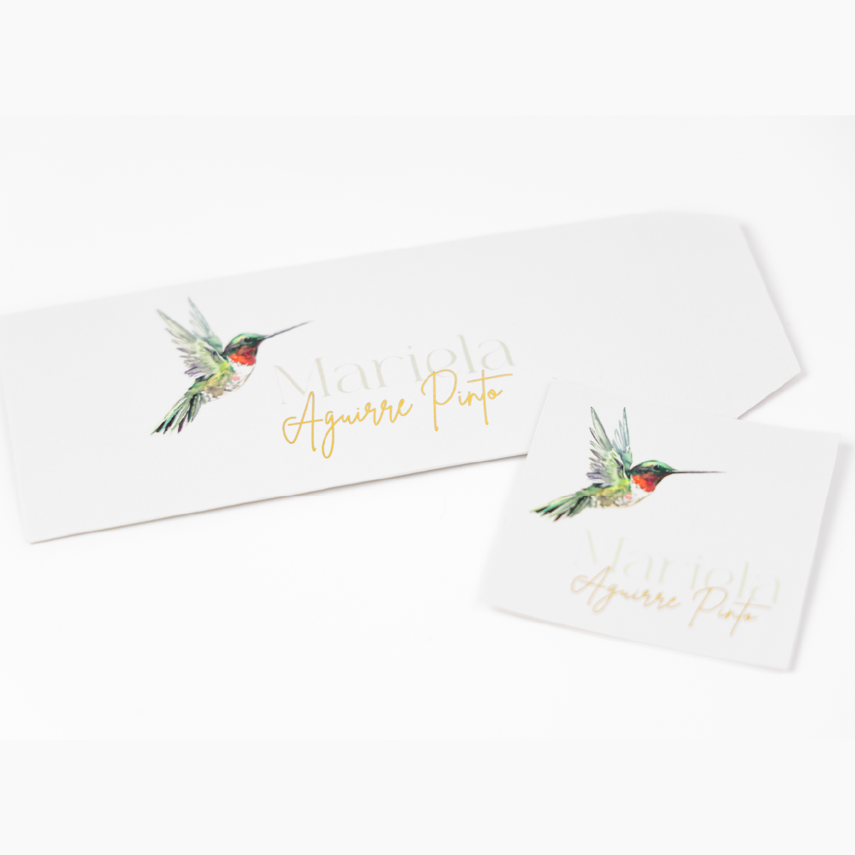 Kit de Sobres y Tarjetas «Colibrí Minimalista» con Foil Dorado