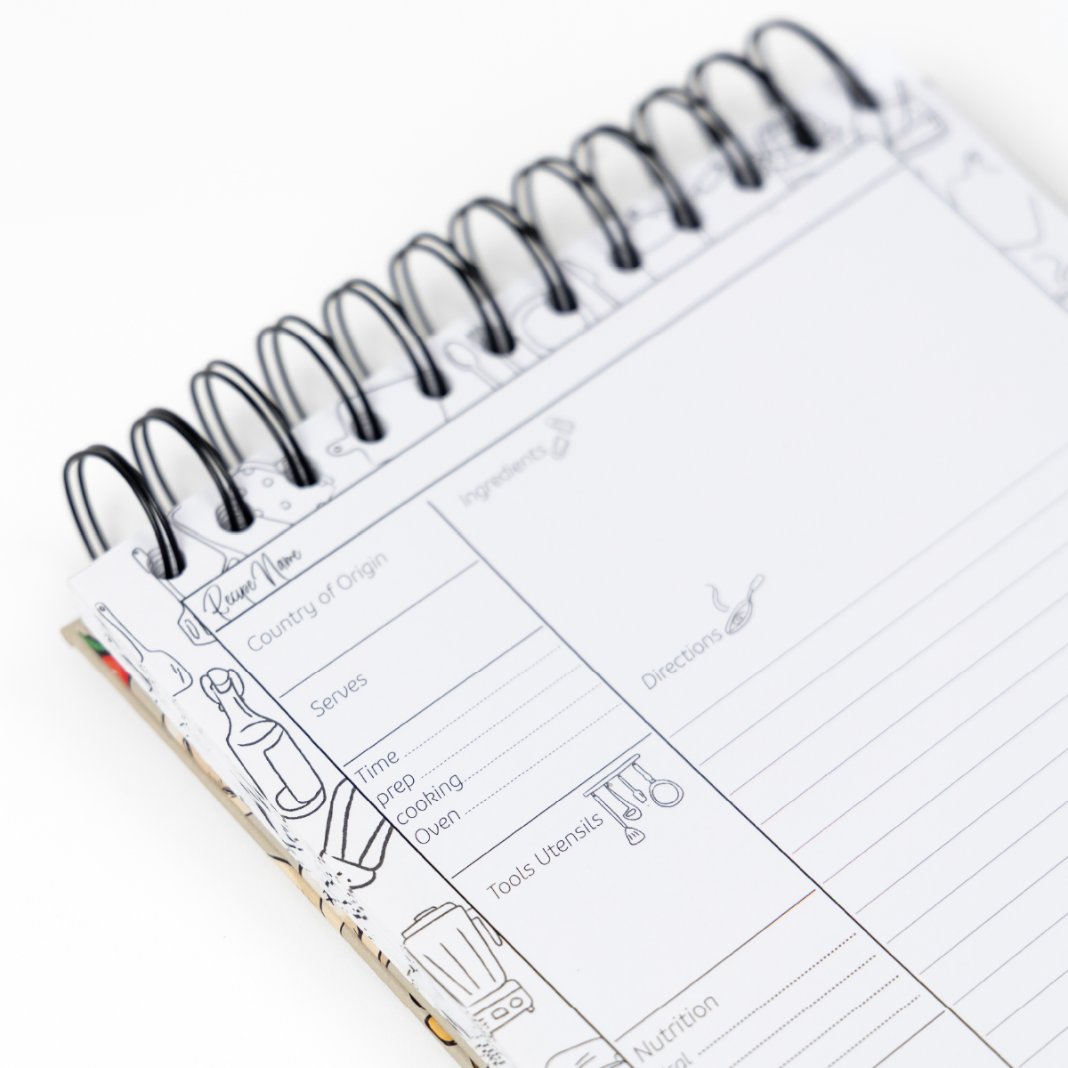 Organiza y preserva tus recetas favoritas con nuestro recetario de cocina personalizado con espiral, ideal para chefs, amantes de la cocina y reposteros. Su portada con diseño Bon Appétit le da un toque único y decorativo, mientras que su encuadernado de espiral permite escribir cómodamente y mantener el cuaderno abierto mientras cocinas.