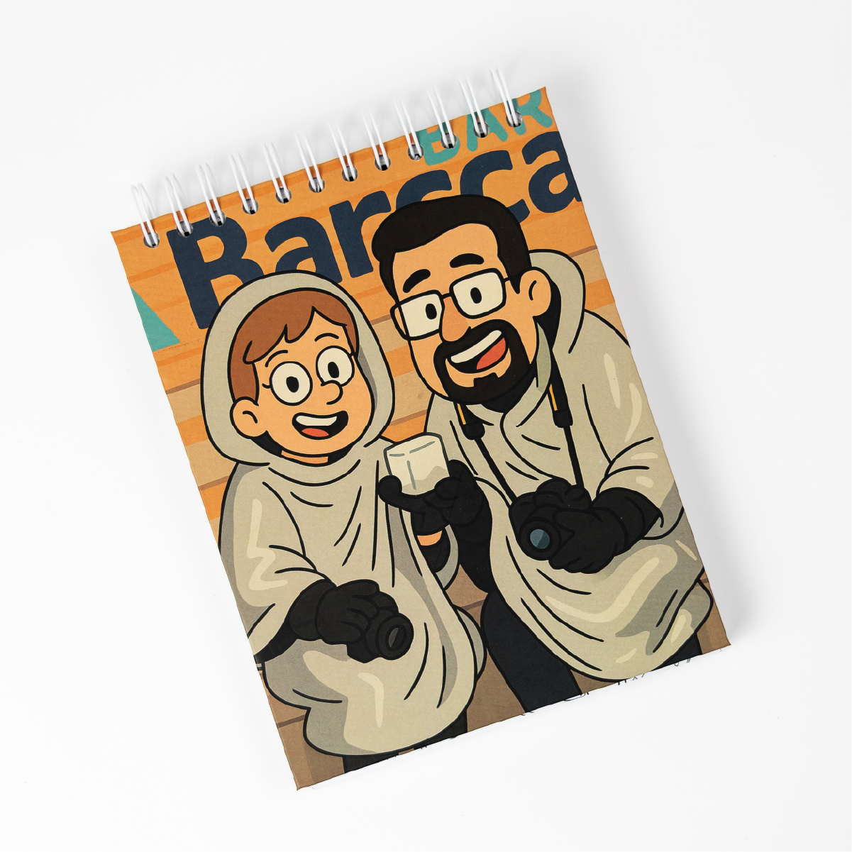 • Portada personalizada con ilustración estilo caricatura.