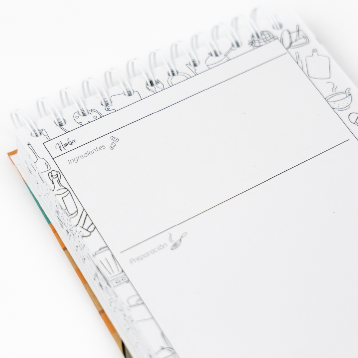 Gracias a su encuadernación en espiral, podrás usarlo cómodamente mientras cocinas, manteniéndolo abierto sin dificultad. Además, puedes elegir el tipo de interior que más se adapte a tus necesidades para organizar tus recetas de forma práctica y ordenada.