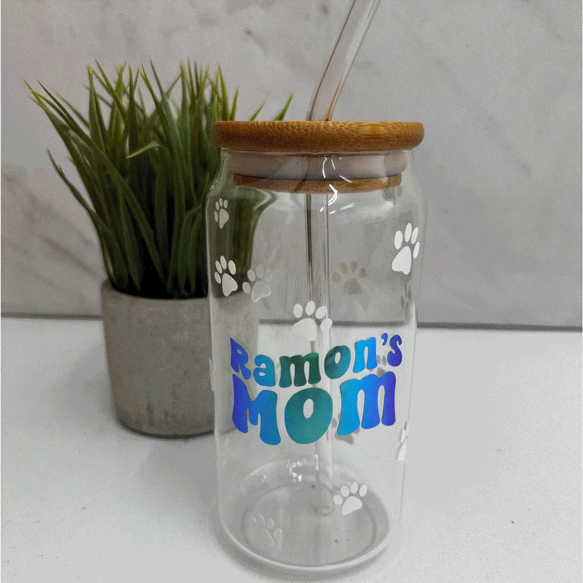 Vaso de vidrio de 12 oz, elegante y resistente. Ideal para bebidas frías o calientes y personalizable con vinil.